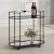 Highlighting A Clean Pill Shaped Design This Bar Cart Brags Of Satin Black Finished Iron Legs Accenting Its Antique Gold Features. Two Plain Mirrored Shelves Act As Stylish Space For Your Favorite Glasses And Sprits. Complete With Rolling And Locking Casters.