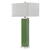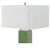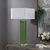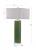 Finished in A Striking Tropical Green Glaze, This Ceramic Table Lamp is Accented By Thick Crystal Ornaments and Brushed Nickel Accents. The Square Hardback Shade is A White Linen Fabric.