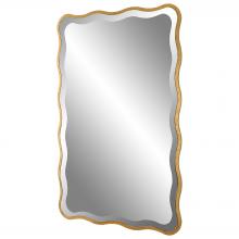 Showcasing A Feminine Scalloped Edge, This Shaped Wood Mirror Adds Whimsical Flair to Any Design. The Mirror is Finished in Aged Gold and Has A 1" Bevel.