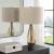 The Baltic Table Lamp Showcases A Dark Amber, Teardrop Glass Base Accented with Rustic Bronze Details. The Round Hardback Drum Shade is A Casual Light Beige Linen Fabric.