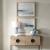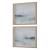 These Tranquil Landscape Prints Are Shown Under Glass Featuring Watercolor Shades Of Navy Blue And Sage. Each Print Is Accented By A White Linen Liner And A Natural Wood Tone Frame. Artwork By June Vess.