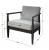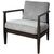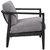 This Refreshing Take on A Modern Accent Chair Features A Curved Open Back Design in Solid Oak Wood. The Dark Ebony Stain Has A Light Gray Glaze Enhancing The Wood Grain. Loose Seat and Back Cushions Are Tailored in A Plush Polyester Channeled Fabric in Steel Gray. Seat Height is 19".