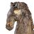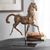 Horse Sculpture in Aged Brown with Subtle Gold Accents on A Black Iron Stand.