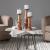 Set of Three Candleholders Showcase Traditional Silhouettes and Are Made From A Matte Butter Rum Glass with Three 3"x 3" White Candles Included. Sizes: S-4x10x4, M-4x12x4, L-5x15x5