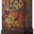 Colorful Flower Print with Burnished Walnut Finished Details. The Rectangle Bell Shade is An Ivory Linen Fabric.