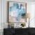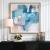 Featuring Shades of Azure and Cyan with Pops of White and Yellow Scattered About, The Continue on Framed Print Adds Tranquility to Any Space. The Print is Accentuated By A White Linen Liner and A Pine Wood Frame Finished in A Light Gray Stain with White Wash Accents. Artwork By Lisa Ridgers.