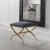Classic Yet Stylish, This Small Bench Features A Curved Iron Frame Finished in An Elegant Gold Leaf. The Cushioned Top is Upholstered in A Textured Navy Blue Fabric, Doubling As A Comfortable Seat or Footrest.