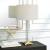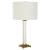 Clean Lines Define This Simplistic Design Featuring An Upscale Square Column Crystal Base Paired with Antique Brass Plated Details. The Square Shapes of The Base Switch to A Petite Round Neck, Finial and Drum Shade in A Crisp White Linen Fabric.