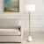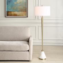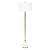 The Curran Floor Lamp Features A Delicately Tapered Metal Body Finished In A Plated Brass And Paired With A Thick White Marble Foot. The Round Hardback Drum Shade Is Covered In A Crisp White Linen Fabric.