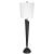 This Futuristic Buffet Lamp Design is Made of Cast Black Man-made Stone with A Noticeable Pitted Surface, Paired with Antique Brass Plated Details. The White Linen Fabric Shade is Reversed Tapered to Follow The Contour of The Lamp Base for A Unique Display.