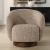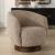 Embodying Richness Of Earth's Warm Tones, The Dunes Barrel Back Swivel Chair Features A Woven Fabric In Mottled Tones Of White, Cocoa, And Rust. Resting On A Plinth Swivel Base In Dark Walnut Stained Oak. Seat Height Is 18".