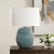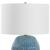 This Ceramic Table Lamp Features An Interesting Organic Texture Of Vertical Cuts. The Reactive Glaze Naturally Creates A Dynamic Layering Of Different Levels Of Beautiful Blues, Greens, And Creams, Paired With Antique Brass Plated Details. A Round Hardback Drum Shade Made With A Casual White Linen Fabric Completes The Piece. Due To The Nature Of Fired Glazes On Ceramic Lamps, Finishes Will Vary Slightly.