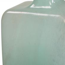Set of Two, Uniquely Shaped, Two-tone, Glass Vases in Aqua and Bronze with An Opalescent Border. Sizes: S-9x7x3,L-6x14x3