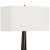 This Floor Lamp Embodies Minimalist Design With Its Slim, Yet Striking Silhouette In Dark Bronze Iron, Complemented By A Black Marble Foot With Subtle White Veining. The Lamp Is Paired With A Rectangular Hardback Shade In A White Linen Fabric.