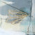 Whimsical Abstract Prints Showcase Light Powder Blue, Deep Charcoal, and Bright Gold Hues. Each Print is Complemented By A Large Silver Leaf Profile Frame with A Gold Leaf Fillet and is Placed Under Glass. Artwork By Jennifer Goldberger.