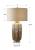 Ribbed Ceramic Finished in A Two-tone Pearlescent Ivory and Rust Brown Glaze, Accented with Plated Brushed Antiqued Gold Details and A Thick Crystal Foot. The Round Hardback Drum Shade is A Light Oatmeal Linen Fabric with Natural Slubbing. Due to The Nature of Fired Glazes on Ceramic Lamps, Finishes Will Vary Slightly.