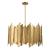 Industrial Metal Segment Sheets Welded with Rough Cut Edges Juxtaposed with A Gold Leaf Finish Give An Elegant Look to This Chic Pendant. 8-60 Watt Max Candelabra Sockets. Bulbs Not Included. Supplied with 15' Wire, 3-12" Stems and 1-6" Stem for Adjustable Installation.