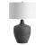 The Graphite Table Lamp Features A Large Ceramic Base In A Distressed Charcoal Finish With Intricate Ribbed Detailing And Antique Brass Plated Hardware. The Round Hardback Drum Shade Is Made In A Casual White Linen Fabric.