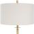 This Sophisticated Design Showcases A Sleek Iron Base Finished in A Lightly Antiqued Plated Brass, Accented By A Substantial Black Marble Column Above The Foot. The Round Hardback Shade is Covered in A White Linen Fabric.