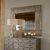 This Ornate Frame Features Heavily Distressed, Golden Champagne Leaf with Black Undertones, Deep Red Dry Brushing and A Heavy, Rusty Tan Wash. Mirror Has A Generous 1 1/4" Bevel and May Be Hung Horizontal or Vertical.