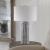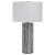 This Ceramic Table Lamp Features Eye-catching, Crudely Carved, Cobalt Glazed Stripes with Contrasting Ivory, Accented with Brushed Nickel Details. The Round Hardback Shade is Covered in A White Fabric.
