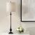This Updated Traditional Buffet Lamp Is Finished In Satin Black With A Luxurious Velvet-like Texture That Exudes Sophistication And Contemporary Elegance, Displayed On A Sleek Black Marble Foot, Accented With Plated Antique Brass Details. The Round Hardback Drum Shade Is Covered In A Crisp White Linen Fabric.