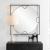 A Square Iron Frame Finished in Satin Black Surrounds A Suspended, Round Polished Edged Mirror, Held with Antique Gold Half Round Iron Bands.