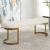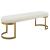 Merging Simplicity with Style, This Bench Features A Thick Hand Forged Iron Base Finished in Mottled Antique Gold Leaf. The Plush Seat is Upholstered in Natural Faux Shearling Fabric.