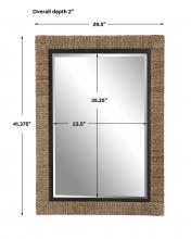 The Island Mirror is Wrapped in Natural Braided Straw with Matte Black Iron Details and A Generous 1 1/4" Bevel. May Be Hung Horizontal or Vertical.