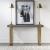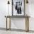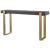Contemporary in Style, This Console Features A Striking Diamond Ash Veneer Top in A Dark Walnut Stain with Light Gray Glazing. The Iron Strap Legs Are Finished in A Warm Brushed Brass.