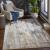 This Machine Woven Rug Features An Abstract Design in Tones of Light Beige, Cream, Denim Blue, and Gray, Constructed From Lustrous Polyester.