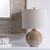 This Unique Ceramic Table Lamp Displays A Rustic, Wavy Ribbed Texture in Rust Brown Glaze Covered in Aged Taupe Tones, Accented with Light Brushed Brass Details. The Hardback Drum Shade is Light Beige Linen with Natural Slubbing.