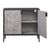 Showcasing A Modern Lodge Style, This Two Door Cabinet Features Hand Pieced Mosaic Doors in Oak Veneer Finished in Light Gray, with A Contrasting Elm Veneer Exterior Finished in Deep Black with Light Gray Glazing. Accented with Solid Iron Hardware and Legs in Aged Black. Has One Fixed Interior Shelf.