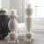 Sculptural Candle Holders Crafted From Ivory Man-made Stone That Accurately Replicates The Look of Thassos Marble and is Accented By An Elegant Crystal Foot. Includes Two, 3x3 Distressed White Candles. Sizes: S-5x12x5, L-5x16x5
