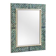 This Unique Design Takes A Whimsical Approach By Adorning A Solid Wood Frame with Fiber Glass Mermaid Scales, Hand Painted in Shades of Tropical Blues, Accented with A Heavy White Wash. Mirror is Beveled and May Be Hung Horizontal or Vertical.
