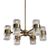 Antique Brass Finish Chandelier Has A Strong Deco Influence in The Design Featuring Thick Textured Clear Glass Cylinder Shades. 12-60 Watt Max Edison Sockets, We Suggest A Type G Bulb for The Best Appearance. Bulbs Not Included. Supplied with 12' Wire, 3-12" Stems and 1-6" Stem for Adjustable Installation.