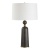 The McQuinn Table Lamp Features A Wooden Cylindrical Base In A Dark Walnut Finish With An Antique Brass Plated Sphere Decoration For Added Elegant Appeal. The Slightly Tapered Round Shade Is Covered In A Crisp White Linen.