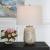 This Ceramic Table Lamp Features Porous Texture Finished in A Taupe and Dove Gray Glaze with A Natural Bottom, and Accented with Brushed Nickel Details. A Slightly Tapered Crisp White Linen Shade Completes The Piece. Due to The Nature of Fired Glazes on Ceramic Lamps, Finishes Will Vary Slightly.