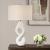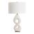 The Meridian Table Lamp Features A Unique Infinity Shape That Adds A Modern Flair To Classic Design. Its Rich Ivory Man-made Stone That Accurately Replicates The Look Of Thassos Marble Is Complemented By A Plated Antique Brass Foot And Matching Hardware. The Lamp Is Paired With A Hardback Drum Shade Covered In A White Linen Fabric.