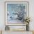 Misty Moonlight is A Stunning Abstract Study Combining Cool Pewter Gray and White with Punches of Cobalt and Powder Blue. Surrounded By A Naturally Finished Pine Wood Frame and Fillet with A Satin White Mat. Printed on Paper with Special Matte Finish. Artwork By Grace Rowan.