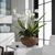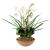 Hand Painted, Natural Brown Dish Garden of White Moth Orchids Planted in Permanent Soil with Mixed Foliage From The Orchid Family.