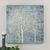 Hand Painted on Canvas, This Landscape Artwork Features A Contemporary Style. Metallic Silver, Gold, and Champagne Silver Trees Are Set Against A Lightly Textured, Mottled Light Blue and Beige Background. The Canvas is Stretched and Attached to A Wooden Frame. Due to The Handcrafted Nature of This Artwork, Each Piece May Have Subtle Differences. Artwork By Kinder.