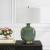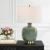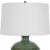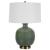 This Unique Ceramic Lamp Showcases A Gracefully Curved Base Finished in A Crackled Aged Green Glaze with Dark Bronze Undertones, Accented with Antique Brass Plated Details. A Slightly Tapered Round Shade Made with A Crisp White Linen Fabric Completes The Piece. Due to The Nature of Fired Glazes on Ceramic Lamps, Finishes Will Vary Slightly.