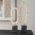 Elevate Your Space With Our Set Of Two Sculptures Featuring Oval-shaped, Cast Ivory Man-made Stone, Resembling The Timeless Beauty Of Travertine, Adorned With Gold Band Accents And Elevated Atop Dark Bronze Bases. Each Piece Showcases Beauty And Rich Texture, Offering A Harmonious Blend Of Organic Elegance And Modern Design. Sizes: S-4x18x6, L-4x22x6