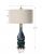 Deep Blue Ceramic Glaze Accented with Plated, Brushed Antique Brass Details. The Round Hardback Drum Shade is An Oatmeal Linen Fabric with Natural Slubbing. Due to The Nature of Fired Glazes on Ceramic Lamps, Finishes Will Vary Slightly.