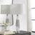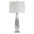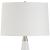 This Sleek and Slender Glass Base Features A Brilliant White Background with Mottled Gray and Metallic Silver Details Displayed on A Thick Crystal Foot and Paired with Plated Brushed Nickel Accents.