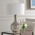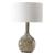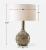 The Rhine Table Lamp Showcases A Seeded Glass Body In Warm Tones Of Light And Dark Browns Paired With Smoke Gray, Accented With Plated Antique Brass Details. The Round Hardback Drum Shade Is A Crisp White Linen Fabric.