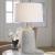 Drawing Inspiration From Antique Clay Pottery, This Table Lamp is Handcrafted From Ceramic in A Mottled Gray and Off-white Matte Glaze with Subtle Carved Details. Steel Accents Are Finished in Brushed Nickel. The Hardback Drum Shade is Covered in A Casual White Fabric.