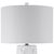 This Ceramic Table Lamp Showcases A Touch of Mid-century Style with A Dimensional Geometric Design Finished in A Glossy White Glaze, Accented with Brushed Nickel Neck and A Crystal Finial. The Lamp is Paired with A White Fabric Drum Shade.