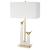 The Songbirds Table Lamp Displays Two Cast Brass Birds Counterpoised on A White Marble Sling Atop A Brushed Brass Plated Iron Base. Complemented By A Rectangular Hardback Shade in A White Linen Fabric.